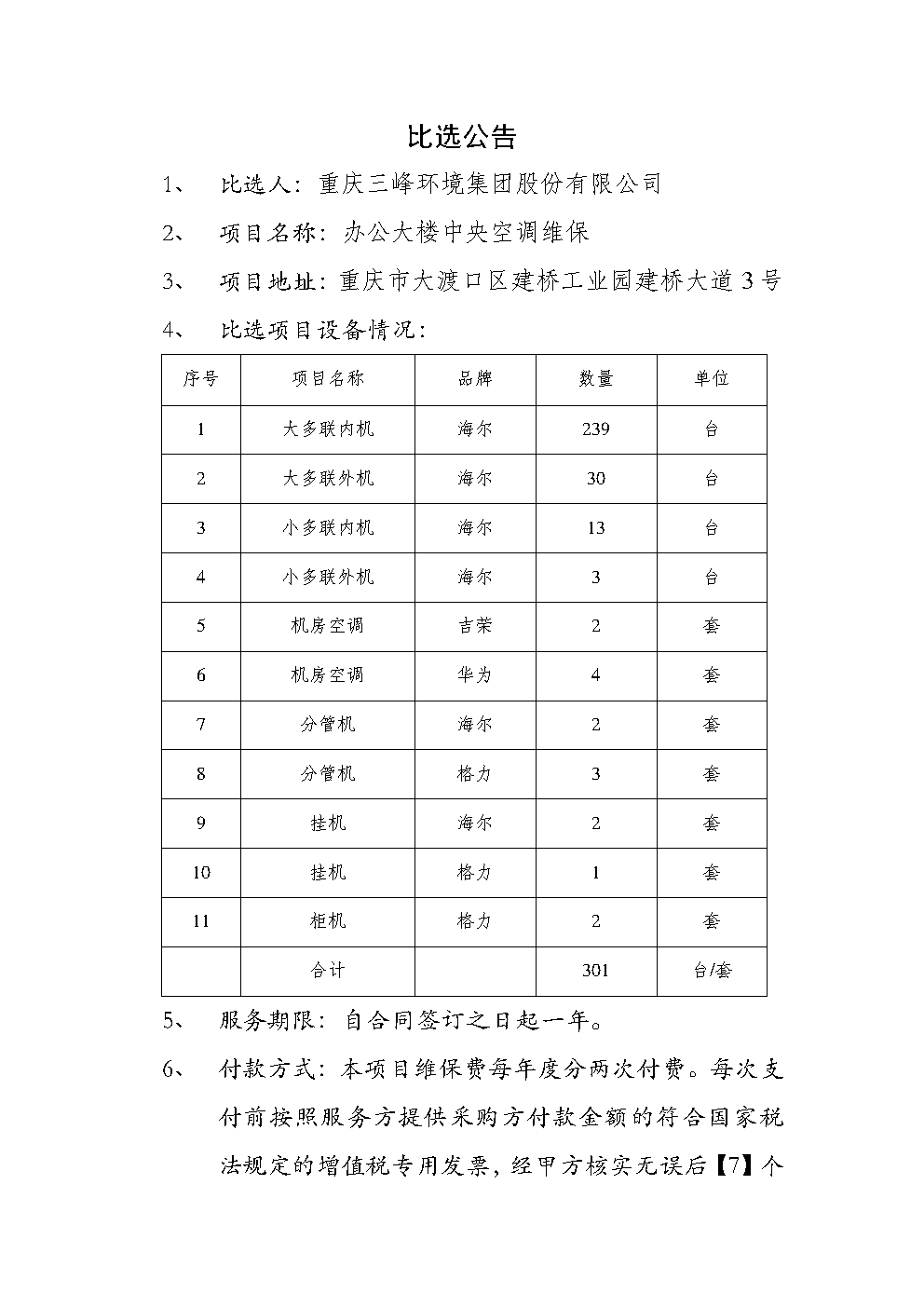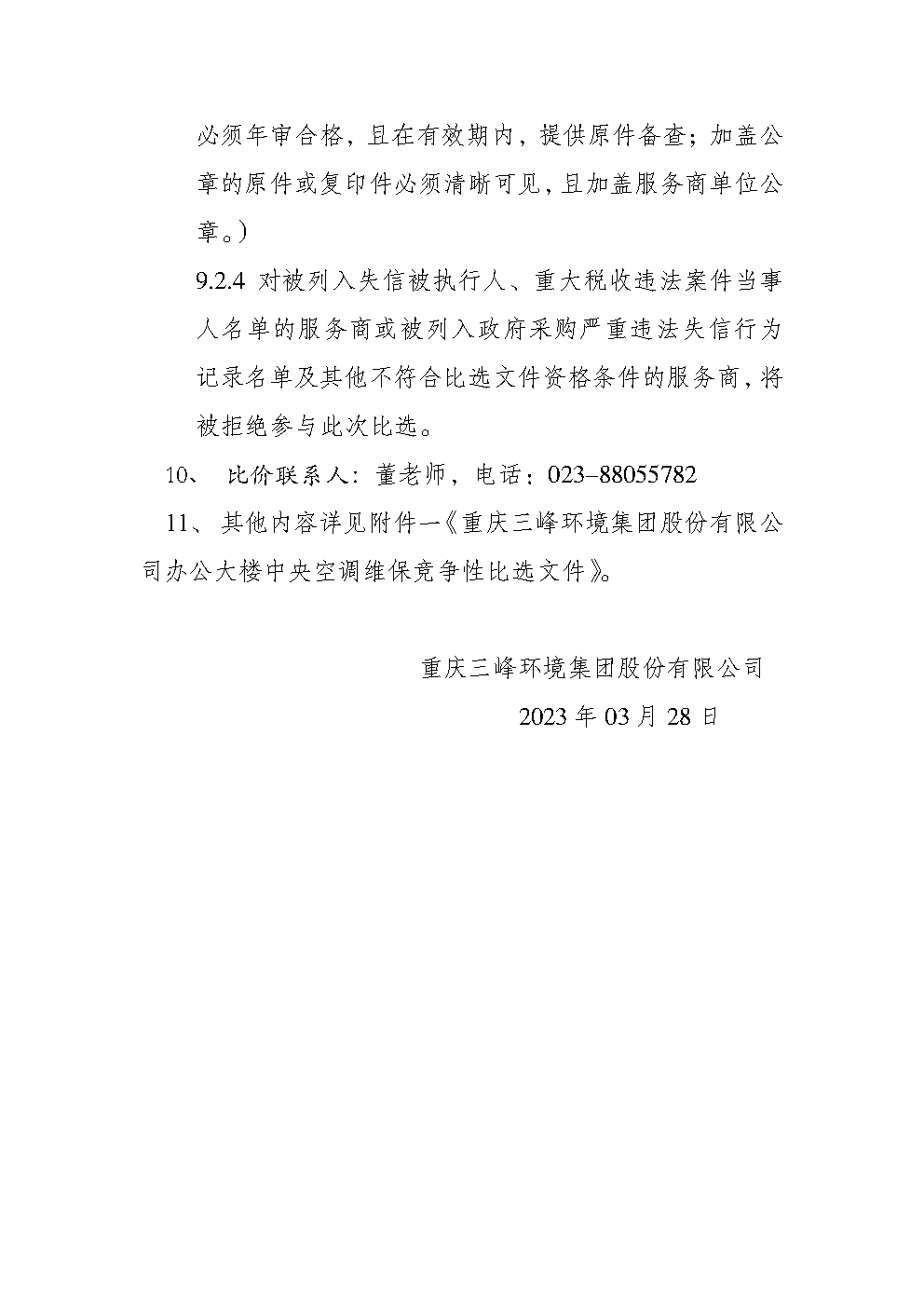 附件一《重慶三峰環(huán)境集團股份有限公司辦公大樓中央空調(diào)維?!?doc